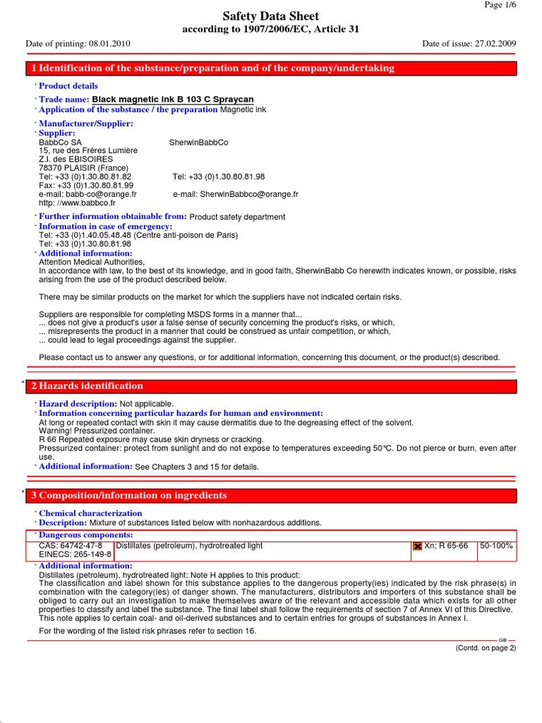 1907/2006 as amended by (ec) no. Stable and not reative with water. Do not dispose of on the land, in surface waters, or in storm drains. 1 of 6 this version issued september, 2016 (australia wide) safety data sheet poisons information centre: Bhc1 360 /msds eff.date : Cayman chemical company 1180 e. Czech evo sachet pack safety data sheet pdf 295 kb. 4/1/11 page 3 of 7 msds malco products, inc. Small spills and waste may be flushed into a waste treatment sewer where local. Safety data sheets (sds) include information about product toxicity, health effects, first aid, reactivity, storage, disposal and more. Dark brown, viscous liquid partially cistallyzed. · 1.3 details of the supplier of the safety data sheet · manufacturer/supplier: Acute silicosis can be fatal.